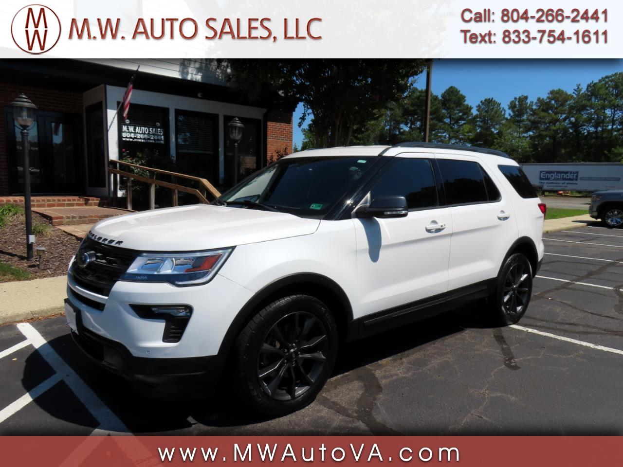 CARFAX CERTIFIED!! SPORT APPEARANCE PACKAGE!! We are pleased to offer for sale this low mileage 2018 Ford Explorer XLT 4WD finished in an original white platinum tri-coat exterior over a black leather/suede interior that is smoke-free. This Explorer comes well equipped with dual power front seats, heated front seats, heated steering wheel, power liftgate, remote start, navigation, front sensing system, sport appearance package, and 20'' magnetic metallic wheels.